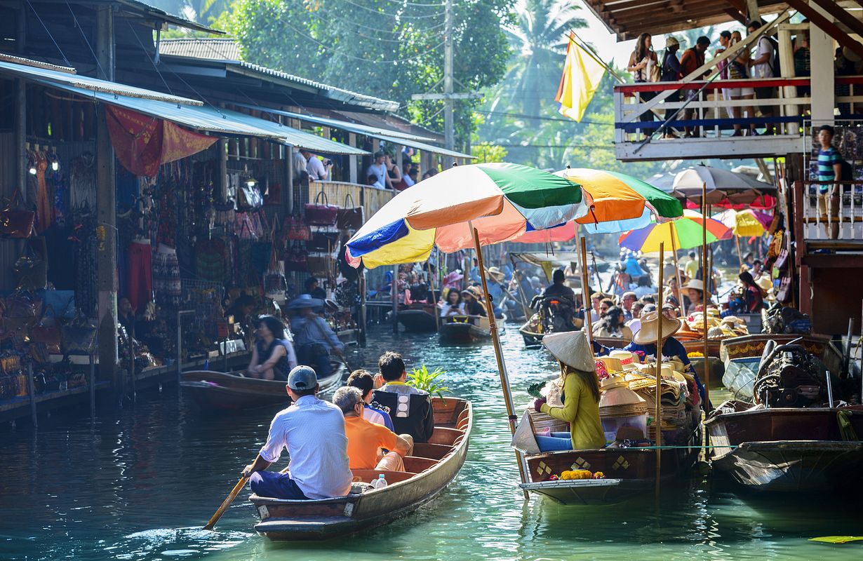 Petit‑déjeuner à l’hôtel puis départ pour le marché flottant de Damnoen Saduak, traditionnel et vieux de plus de 100 ans. Continuation vers le marché ferroviaire de Maeklong (Talad Rom Hoop), où le train traverse le marché. L’après‑midi, visite du temple Wat Arun au bord du fleuve Chao Phraya, puis retour à l’hôtel et soirée libre.