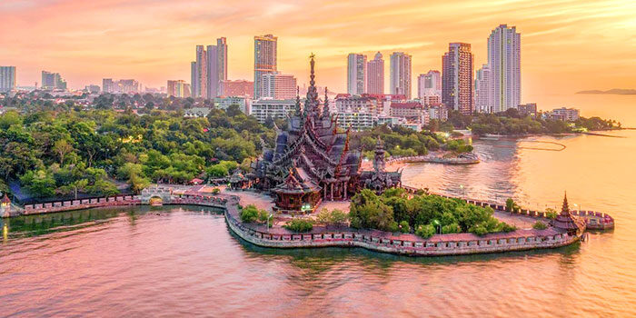Petit‑déjeuner à l’hôtel puis visite de l’ancienne ville de Pattaya en passant par Phratamnak Hill, offrant une vue panoramique, puis la jetée de Bali Hai, port touristique vers les îles voisines. Découverte des marchés traditionnels et d’un temple du Bouddha. Retour à l’hôtel et nuit à Pattaya.