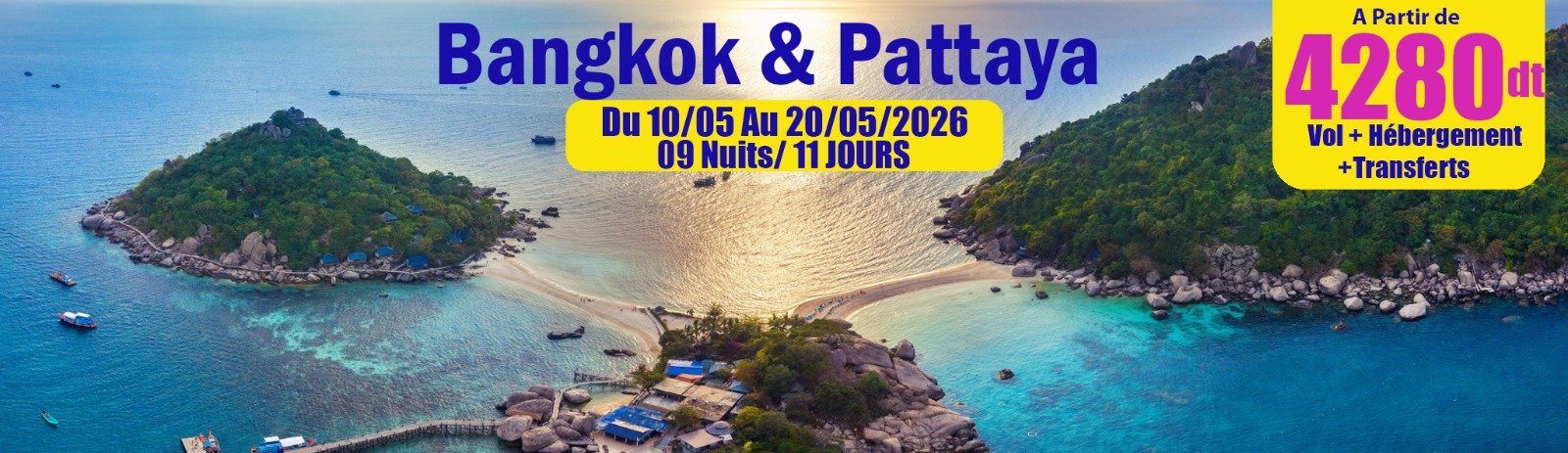Circuit 11 jours / 9 nuits à Bangkok & Pattaya : hôtels 5★, île de Corail, Columbia Pictures Aquaverse, marchés flottant & ferroviaire, Wat Arun, dîner-croisière White Orchid, transferts et guides inclus.