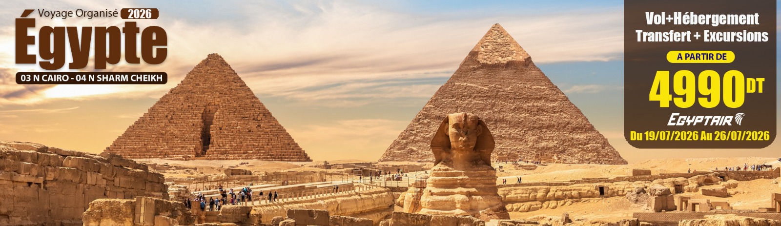 PACK 7N/8J Vols Via Egyptair+ 04 Nuitées en soft all in à SHARM SHEIKH + 03 Nuitées en LPD CAIRE + 04 Excursions + Transferts