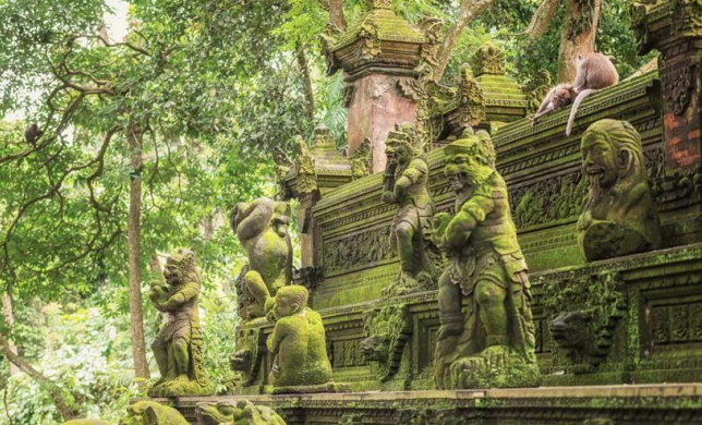 Petit‑déjeuner à l’hôtel puis départ en bateau rapide vers Bali et route pour Ubud, centre culturel de l’île. Visite du marché traditionnel d’Ubud, idéal pour découvrir l’artisanat balinais (objets en bois, sacs en rotin, textiles, bijoux), puis de la Sacred Monkey Forest Sanctuary, vaste forêt tropicale abritant des temples et une importante colonie de macaques. Installation à l’hôtel et fin de journée libre. Nuit à Ubud.